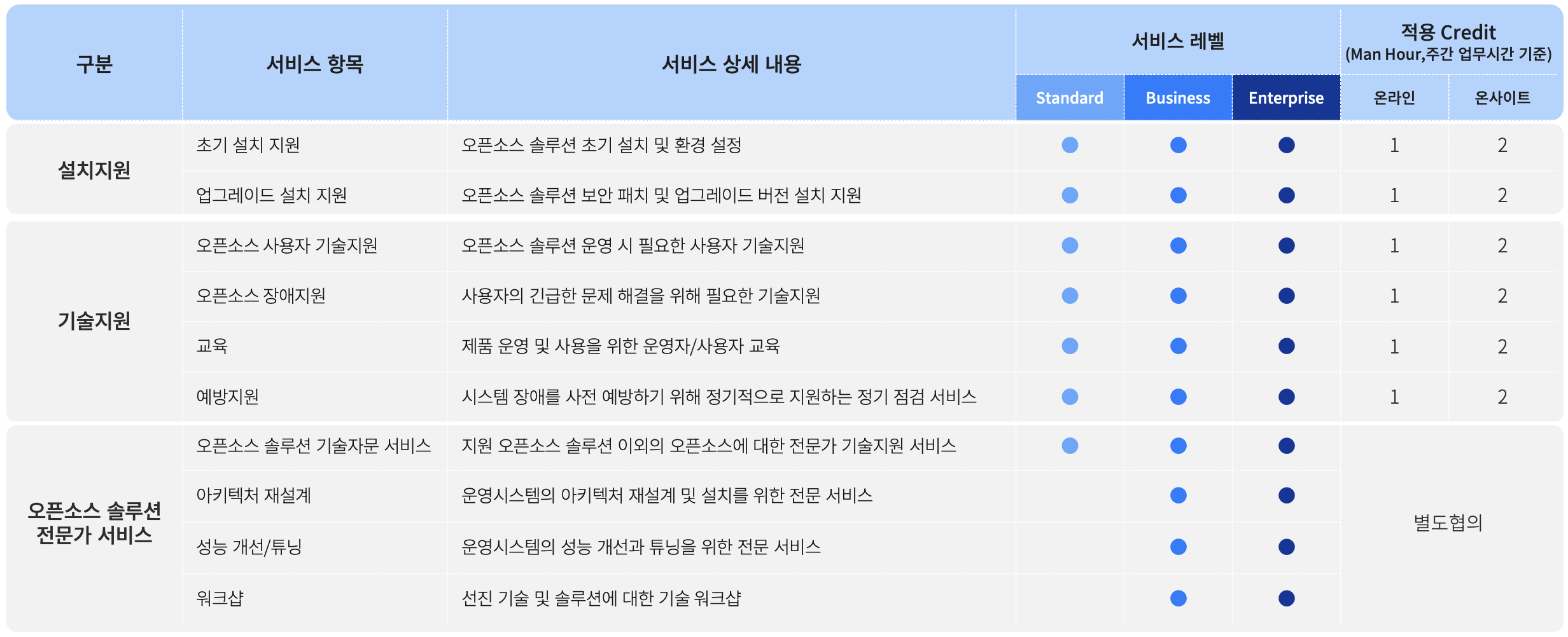 오픈소스 설계 및 설치 계획부터 환경설정, 설치, 구성, 배포, 성능, 튜닝, 정기점검, 장애 처리 및 기술교육에 이르기까지